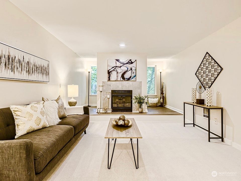 WELCOME HOME! Immaculate, fully remodeled, 1 bedroom/1 bath, 3rd floor condo with easy commute to downtown Seattle! All appliances included. Spacious dining room, romantic wood-burning fireplace, utility closet w/ washer & dryer. Spacious master bedroom. Brand new: paint, high end laminate, carpet, countertops, closets, fixtures, lighting, etc... Windows, siding & decks redone in 2017. New roof in 2019. No special assessments! 1 garage parking space, secure lobby entrance, elevator & on-site manager. 2 pet limit w/ restrictions & no rental cap. Nearby trails, Bitter Lake, and the best-priced unit around!