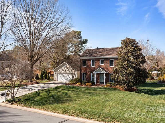 Immaculately maintained traditional home on cul-de-sac street in The Heathers (no HOA) offering charm, comfort, & beautiful updates! Move-in ready with an updated kitchen, rich wood flooring throughout the main level, & elegant plantation shutters that allow natural light through updated vinyl windows. Fresh, neutral paint enhances the home's appeal. The inviting main level features a spacious den with a cozy gas fireplace perfect for relaxing evenings, a formal dining room ideal for entertaining, & a stylish kitchen with updated granite countertops, stainless steel appliances & bay window breakfast nook.Take the recently updated wood staircase to the second level, where you'll find three bedrooms, including a large primary suite with vaulted ceilings and en-suite bath. The large 2 car garage & shed make for handy storage! Step outside to a beautifully landscaped backyard and enjoy your own private retreat— Just minutes to shopping, dining, and the charm of Historic Downtown Matthews!