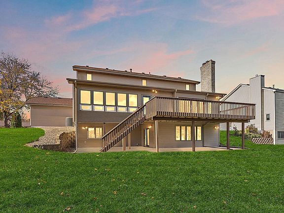 Tastefully updated home on Sunset Pond. Beautiful eastern exposure perfect for watching the sunrise. Access to nature nestled in the city. Sunset Pond Park is home to one of the city’s largest paved path loop trail and a picnic area/shelter for gatherings, a trail for walking/biking, fishing opportunities, kayaking, canoeing, and a playground. Spacious master bedroom and main floor laundry provide all living facilities on one level. Soaring vaulted ceilings and main level living room provides cozy gas fireplace and lake views with a large double french sliding glass door that walks out to 28' x 12' deck. Lower level features huge entertainment room with gas fireplace, wet bar, and a walkout to large cement patio.