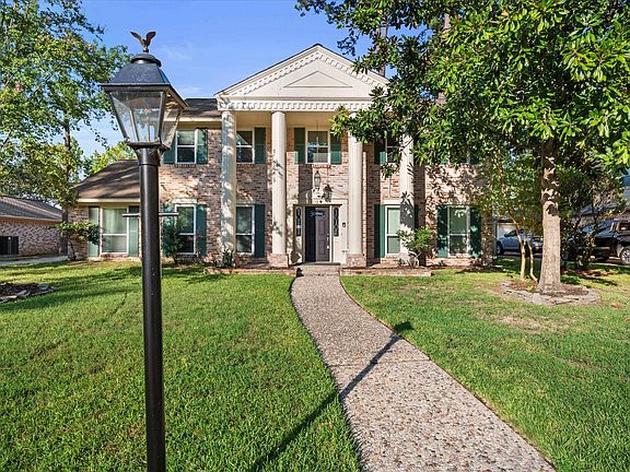 Welcome to this stately Colonial with classic columns in sought-after Huntwick Forest. This 5-bedroom, 2.5-bath home offers formal living and dining, a light-filled family room overlooking the pool, and a spacious breakfast area. Utility room and half bath are conveniently located by the back door for easy pool access. Recent updates include windows (2021), water heater(15), and an updated upstairs bath. Furnace 2009, A/C 2021. Upstairs, a generously sized bedroom can serve as a second primary or game room. Enjoy a sparkling pool and large patio for entertaining or relaxing in your private backyard retreat(custom pool fence included). With timeless curb appeal, versatile living spaces, and a prime location near FM 1960, Hwy 249, and minutes from 99, this home blends comfort, character, and convenience in one of Northwest Houston’s most desirable neighborhoods.