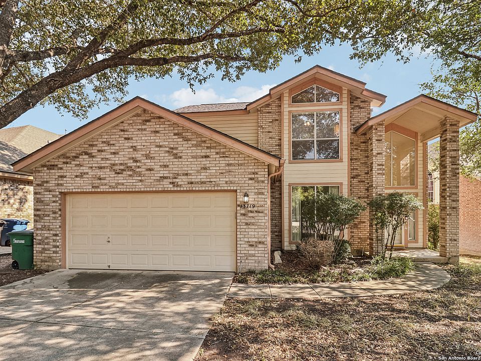 This 3-bedroom, 2-bath home sits on a spacious greenbelt lot, offering both privacy and peaceful views. The city owns the greenbelt behind the property, ensuring no future building and preserving the natural setting. Inside, you'll find an inviting foyer that opens to a light-filled living room with a cathedral ceiling, fireplace, and large windows that bring the outdoors in. The open layout connects to the kitchen, which features modern appliances, ample counter space, and a breakfast area with bay windows overlooking the backyard. A recently updated half bath adds convenience. The primary suite is located on the first floor and includes a soaking tub, separate walk-in shower, double vanity, and a generous walk-in closet. Two additional bedrooms upstairs offer plenty of space for family, guests, or a flex room. Ample storage space throughout the home adds to its practicality Step outside to enjoy the deck surrounded by mature trees and scenic greenbelt views-perfect for relaxing or entertaining. Located in the serene Oak Hollow Village neighborhood, this home is part of a highly regarded school district and provides easy access to 281, 1604, parks, shopping, and entertainment. Book your personal tour today!