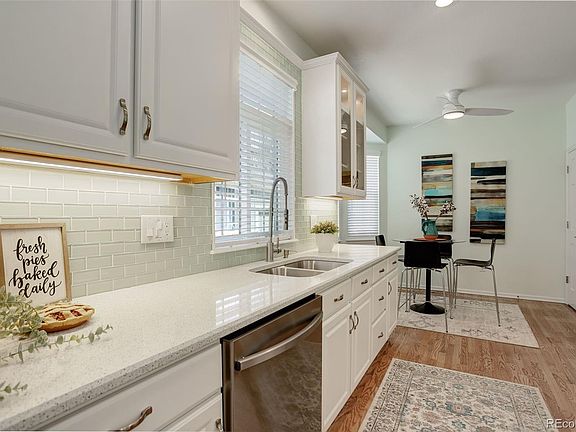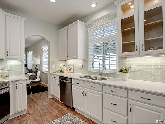 Updated Ranch-style One-Level 2 Bedroom 2 Bath Luxury Townhome nestled within The Broadlands Golf Course community in The Falls at Legend Trail, with an 800SF unfinished basement offering a blank canvas for you to tailor the space to your unique needs and preferences. Has over-sized Primary Suite, with two customized California Walk-in Closets, sizable Linen Closet, and renovated 5-piece Bath with private commode, ADA compliant bar installed in the shower, ultra convenient storage with medicine cabinets behind the mirrors to accommodate all your storage needs. Both Baths and Kitchen recently updated in 2022. Hardwood Floors installed throughout the Main Level Entryway, Kitchen, Living Room, and the Office. The Gourmet Kitchen offers newer Stainless-Steel Appliances, stunning Quartz (Whitney) Countertops, and is complete with a separate Eating Nook, spacious Pantry, new cabinet doors with “soft-close” hinges, all new soft-close drawers, and all cabinets have customized pullout shelves for convenient accessibility, crown molding, and under-cabinet lighting—perfect for enhancing the ambience in the evening. Main Level Laundry and attached 2-car garage. Has a second Bedroom on the Main Level with a secondary renovated full Bath, along with a space that could be used as an Office or an additional Sitting Area. New Pella Windows and Blinds were installed in 2024 throughout the home. Newer Larson Storm Door, allowing for lots of natural light and fresh air as you enter the home. Within walking distance to Top Ranked Schools (Elementary, Middle, and High School). The Association offers Complete Exterior Maintenance including the Roof. Community Amenities include an outdoor Community Pool, Clubhouse, and Park. This community is surrounded by walking/biking paths and close to all the amenities and to nearby Plaster Reservoir. Easy freeway access to Hwy 36 to Boulder or I25 to Denver or to the Airport. Great Shopping at The Orchard and numerous Restaurants just 6 minutes away!