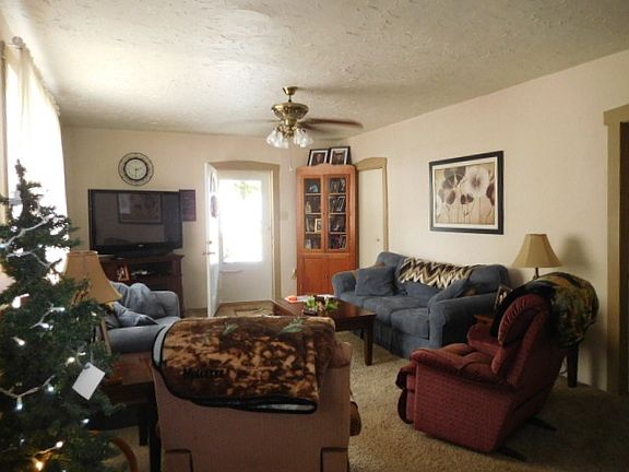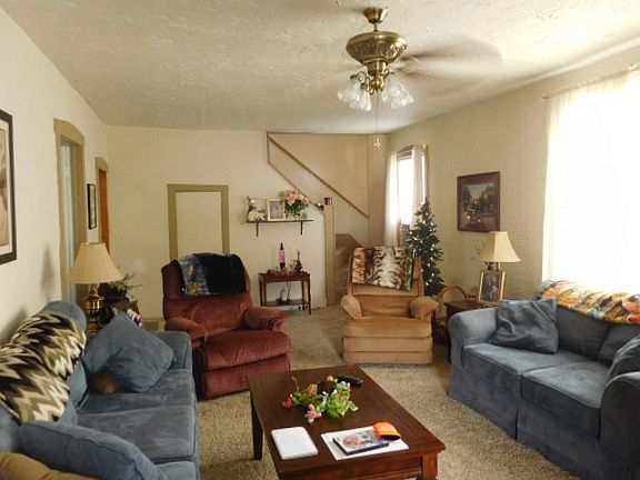 Home has has updates over the last view years. Large living room at front of home with huge kitchen, dining, family room/play room all across back of home with a view to Privacy fenced in back yard from patio doors. Room for dining room table and chairs and bar stool area at counter. Home features one bedroom and full bath on main level with a large landing and 3 bedrooms and full bath up. One bedroom upstairs is 20x17. Lots of room for everyone in this 2,360 sq ft home. Home and Detached garage will have all new roofs with in two weeks. Property taxes will be reduced with Homestead and mortgage exemptions. Average electric $245 and average gas only $35