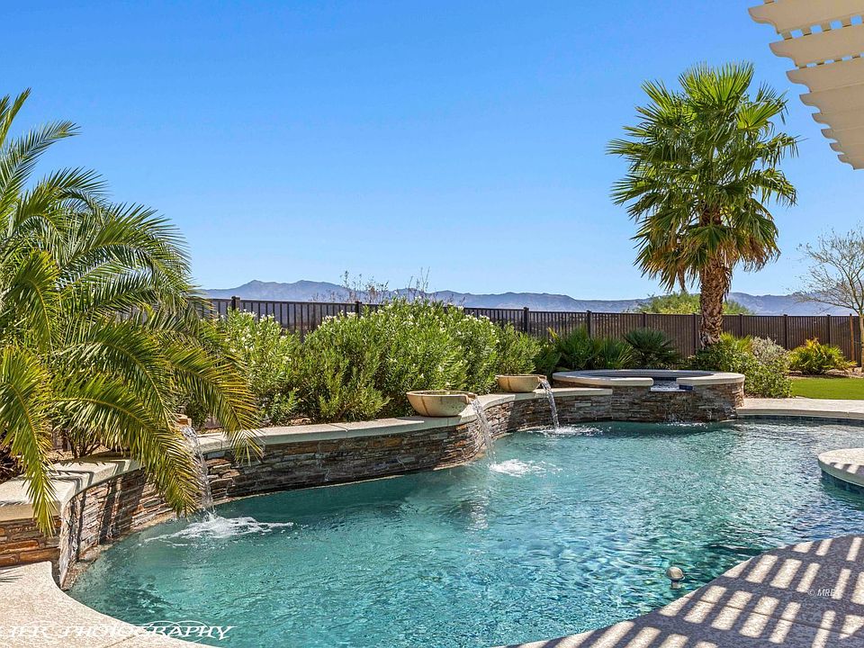 Fab Mt-View .29 AC lot, Sun City Home, Spa-like Pool/Spa,. Discover your dream home on an amazing panoramic view elevated .29 ac lot nestled on a quiet cul-de-sac in Mesquite's desirable Sun City community. This beautiful Pursuit model & custom casita offer 2,258 square feet of living space which includes 3 BR, 3BA, plus den. You will enjoy the easy to care for tile found throughout the home. The custom espresso cabinets are exquisite and complement the granite counters. The bathroom has a spa like feel with the jetted tub and rain head shower. The garage is extended to accommodate your vehicles. The backyard is where the magic happens. It's like having your own private getaway with a gorgeous custom pool with waterfalls and spa. Enjoy the amazing views from the extra large sitting area complete with propane connected fire pit. This home is close to all amenities. Visit the Conestoga Golf Club for a round or grab dinner at the 1880 Grille. The Sun City Rec Center & pickleball, the courts are nearby. This is the one! Video https://youtu.be/yfjDMY4nDeo