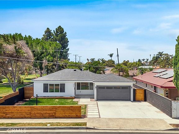 NEW PRICE IMPROVEMENT! Welcome home to this charming single-family residence in the highly sought-after neighborhood in Tustin. Located next to the Pine Tree Park, this single-level 2-bedroom, 2-bathroom starter home is 1,185 square feet and sits on a spacious 6,600 square foot lot. The beautifully remodeled home is move-in ready. Inside, you'll be greeted by a bright, airy open floor plan encompassing the living room, kitchen, and dining area. The living room features a striking modern electric fireplace. Stylish colors, new flooring, fresh paint, and recessed lighting throughout the house add a contemporary touch. The brand-new kitchen, perfect for cooking and entertaining, boasts new cabinets, stunning quartz countertops, and stainless-steel appliances. Both bedrooms are spacious, and both bathrooms have been completely remodeled. The private backyard, accessible from the master bedroom and through the laundry room, includes a custom wooden deck, firepit area, seating area, 3 abundantly producing citrus trees and ample space for entertaining. The backyard is fully fenced with a block wall, ensuring privacy and a secure play area for children. The garage has 2 door or a pull-through style and accesible both ways in the front and backyard. There is a large, paved area behind the garage for additional parking, and the lot would lend itself to an additional ADU or 2 new homes on a lot. There's room to add a pool, the possibilities are endless. Located in a well-established neighborhood. This home has no HOA fees and falls within the Tustin Unified School District, known for its award-winning schools. It's just minutes from Old Town Tustin, Tustin Legacy, Tustin Market Place, and major freeways (55 & 5), offering easy access to top-notch restaurants, world-class shopping, and all that Orange County has to offer. Don't miss out on this lovely home—come see all it has to offer!