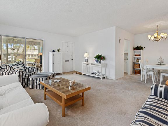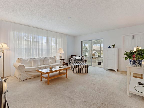 Light & Bright Villa-style condo in High Point of Delray Section 6! Features 2 bedrooms, 2 bathrooms. Neutral carpeting throughout. Upgraded kitchen w/ white raised panel cabinetry, soft close drawers & doors, granite countertops, tile backsplash w/glass inlays, slide in stove & under cabinetry lighting. Guest bathroom features updated vanity w/ample storage & step-in shower. Guest bedroom w/newer closet doors. Master bedroom w/ walk-in closet & bathroom vanity area with updated vanity & combo tub/shower. Enclosed Florida room vented for AC with sliders. AC Carrier 2013, Newer Windows, accordion shutters. HWH 2009. Property is being sold partially furnished, with exclusions. Association allows W/D in unit.High Point of Delray Section 6 offers a clubhouse, pool, tennis & shuffleboard