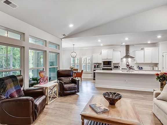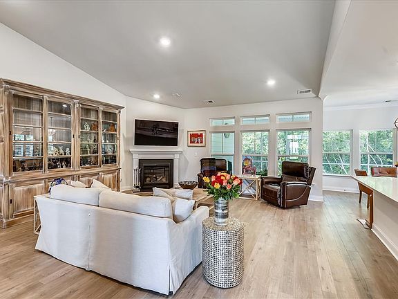 One YEAR old and Wi-Fi certified with smart devices throughout including Alexa and Ring- perfectly designed for a luxurious, yet low maintenance lifestyle!This lovely home sits on a the most premium and desired lot in the entire Liberty Cottages 55 and over neighborhood. Nestles on a quiet cul-de-sac backing up to lush woodlands, you will enjoy the privacy of nature from virtually every room in the house including all of the bedrooms. Overlooking the open living room, the beautifully upgraded chef's dream kitchen includes a six burner gas cooktop, stainless steel appliances, 42'' cabinets with molding, tile backsplash and quartz countertops. Social distancing is made easy for entertaining family and friends at the oversized island and the expansive eat-in area. Complete with..vaulted ceilings and a cozy fireplace, the living room is a wonderful spot to relax or entertain. Speaking of entertaining, there are plenty of options indoor and out, including the formal dining room or the large screened-in porch with a view of the serene woods beyond the back yard. The designer upgraded light fixtures and the luxury plantation shutters ($7000) are worth noting as you tour the home. A restful retreat, the owner's suite features a vaulted ceiling, two upgraded walk-in closes, plush carpet and a large, en-suite bath with separate walk-in shower with upgraded rainfall shower head, garden tub, ceramic tile, dual sinks and granite countertops. Two additional bedrooms with large closets create plenty of space for a study, home office, crafting room or guest. There's plenty of parking- the attached 3 car garage and extra-wide driveway provide space for your golf car and ensure that all of your visitors have a spot to park! **TV conveys. HOA provides common area maintenance and landscaping, most home landscaping and lawn irrigation maintenance, window cleaning twice per year and gutter cleaning & power washing once per year. There are many more great features to mention- please see a list of them in the document section.