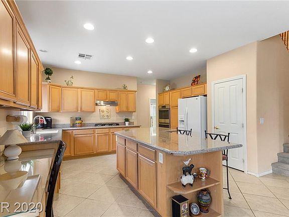 WOW! Inviting 5 bed, 3 bath, 4 car garage home on huge 1/2 acre lot with patio and RV parking on both sides of house, all in a beautiful gated community. Spacious kitchen with granite counters, island, breakfast bar, walk in pantry, new SS appliances. Huge master bedroom and bath with enormous walk in closet. Gas FP, 9 ft ceilings, downstairs bed/bath, large laundry room, mountain view from back and strip view from front upstairs bedrooms.