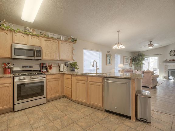 Beautiful Artistic home featuring 3 bedrooms 2 bathrooms and a 2 car garage! This home sit is Cabezon a planned community in Rio Rancho featuring an active lifestyle with parks, walking trails close to new commercial developments. A few other features this home boasts are: gourmet kitchen with granite countertops, stainless steel appliances, kitchen pantry, 2 living areas, cathedral ceilings, ceiling fans, wood vinyl flooring in main living space, new carpet in all bedrooms, linen closet, master bedroom walk-in closet, refrigerated air, gas-log fireplace, covered patio, beautiful park nearby and fully landscaped front and backyard featuring a Kiva style outdoor fireplace. Come and see it today before it's gone!!