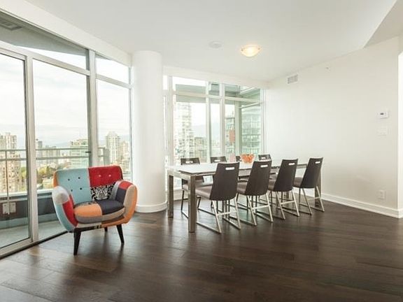 This 2-bed suite has the best views stretching from South Granville, west across English bay to West & North Vancouver. The open-plan layout is great for entertaining guests or enjoying the view from every room. This home features hardwood floors, Kitchen Aid appliances, composite stone counters, travertine tiles, marble bathrooms, AC, floor to ceiling windows. Enjoy BBQ's on your large covered SW facing patio. Plenty of in-suite storage. Included is 1 parking with the option to rent a second. 10,000 sqft Wellness Centre featuring a fully equipped gym, yoga/dance space, outdoor pool/hot tub, sauna/steam room, theater. Steps to the seawall and Yaletown's restaurant scene. Sorry, No Pets at this Unit. **Any parking stall measurement/size to be verified by prospective tenants if applicable.**