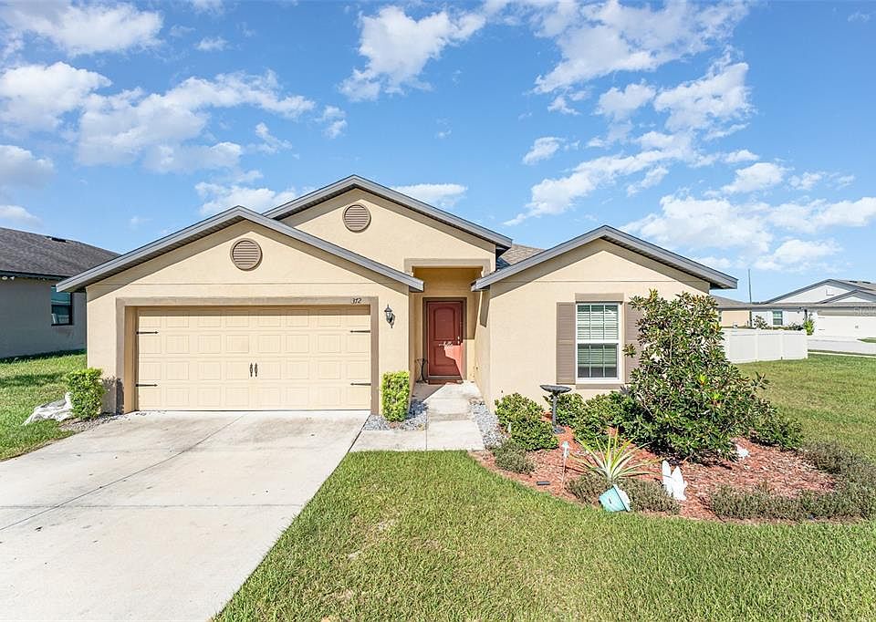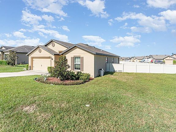 One or more photo(s) has been virtually staged. Short sale subject to lender approval. This spacious one-story home features 5 bedrooms and 3 bathrooms, situated on a huge, fenced corner lot. The interior boasts high-end upgrades, including granite counters, stainless steel appliances, 36-inch wood cabinets with crown molding, and brushed nickel fixtures throughout. The master suite is particularly impressive, offering a large walk-in closet and dual vanities for added convenience. The open-concept living, dining, and kitchen area flows seamlessly to a covered patio and a beautifully landscaped yard, perfect for entertaining or relaxing. An attached two-car garage provides ample parking and storage. The home is located in The Ridge at Swan Lake, a community known for its walking trails and proximity to Lake Marie Park. Residents also enjoy easy access to Dundee Rec Park. Its location offers an ideal blend of comfort, style, and convenience, being approximately 20 minutes from LEGOLAND® and 45 minutes from Disney and other major Central Florida attractions.