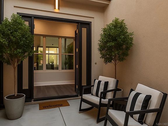 Welcome to Pacific Highlands Ranch, where thoughtful architecture, luxury finishes, & seamless indoor/outdoor living come together balancing sophistication & comfort. As you enter through a private courtyard, you will instantly feel the sense of serenity this special home offers. The beautifully appointed kitchen w/ soaring ceilings, oversized island, Thermador refrigerator, Bosch appliances, walk-in pantry, & luxury cabinetry is truly the heart of this home! Enjoy the tranquility of your interior courtyard while embracing endless entertaining options alongside your expansive great room. Escape to enjoy the views of the lush west-facing backyard where a built-in BBQ & multiple seating areas create the perfect setting for enjoying San Diego’s magical sunsets. Welcome your guests to the finest GenSmart Suite offering its own sitting room, kitchenette, full bathroom, laundry closet, & private entrance. Upstairs, your primary retreat is a relaxing sanctuary w/ a private balcony offering ocean views and westerly breezes. A custom closet & spa-inspired bath w/ soaking tub & custom shower complete the suite while 2 additional ensuite bedrooms & generously sized loft complete the 2nd level. Thoughtful upgrades include new luxury vinyl plank flooring on the main level, custom motorized window shades, Anderson windows & doors, pre-wired EV charging, & owned solar. As part of PHR North, residents may access 2 clubhouses, a fitness center, & multiple pools & spas. Located just moments from the PHR Rec Center, The Village at PHR, top-rated schools, & nearby hiking & biking trails.