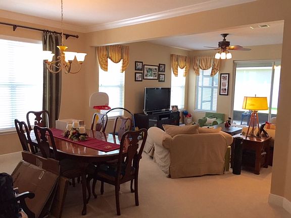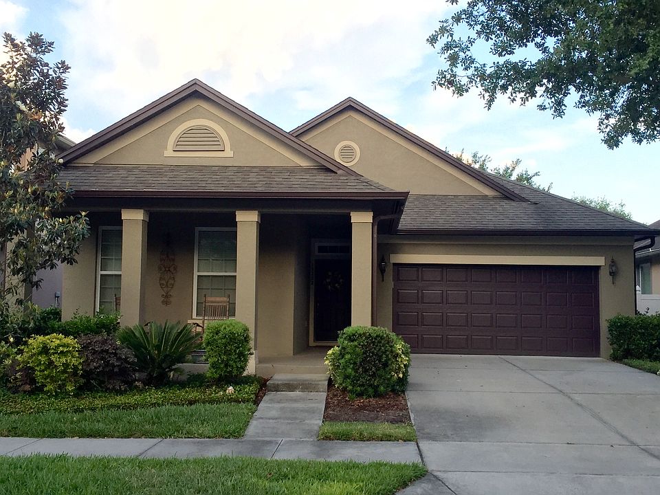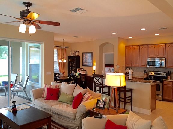 Looking for a great home in a charming neighborhood? Look no further. Enjoy the springtime weather sitting on the front porch. When you are ready to go inside, enter into the foyer and go to the guest bedrooms and bathroom or travel down the hall to the living area. The open floor plan is ideal for entertainment with the dining room, living room, kitchen, and eat-in area all together. The kitchen has a breakfast bar, granite counter tops, and stainless steel appliances. The sliding glass doors will lead you to the screen enclosed lanai and back yard, which has two beautiful trimmed oak trees providing shade when sitting outside. At the end of the day, relax in the garden tub and then fall asleep in the spacious master bedroom with ceiling fan and tray ceiling. Other features include a walk in closet in the master, indoor laundry room, pantry closet, a fenced in back yard, and reclaimed water for irrigation to save on water bills. Take a walk on the sidewalks to the community pool, playground, tennis court, and basketball court. A great community located near attractions, shopping, schools, and much more. Sellers are offering a $450 1 year AHS Warranty. Make an appointment to see this gem today!