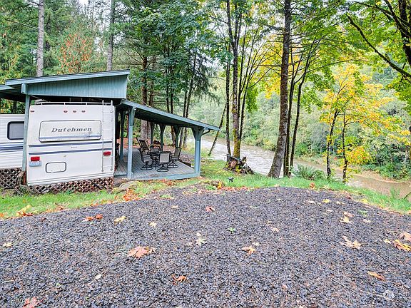 Weekend escape on the beautiful Washougal River! Come and enjoy the peaceful riverfront views and serene landscape from this double lot, complete with cozy travel trailer. Step out into the fresh air, and onto the covered deck for perfect views and sounds of the river. Community living at its finest, plenty of space for parking and enjoying outdoor life. Includes access to the Washougal Timber Trails Lodge facilities, including kitchen, restrooms, showers, laundry, ice machine, wi-fi, fireplace, deck and river access.