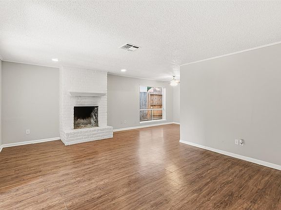 Single-story 4-bedroom, 3-bath home with a 2-car garage and built-in cabinets, offering plenty of storage and functionality. Features a classic brick fireplace and tons of potential to make it your own—perfect opportunity to create your dream home!