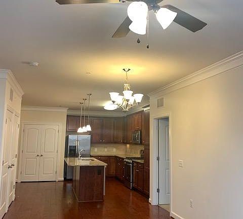 - Combination Kitchen/Living, Crown Molding, Dining Area, Kitchen - Gourmet, Kitchen Island, Open Floorplan, Pantry