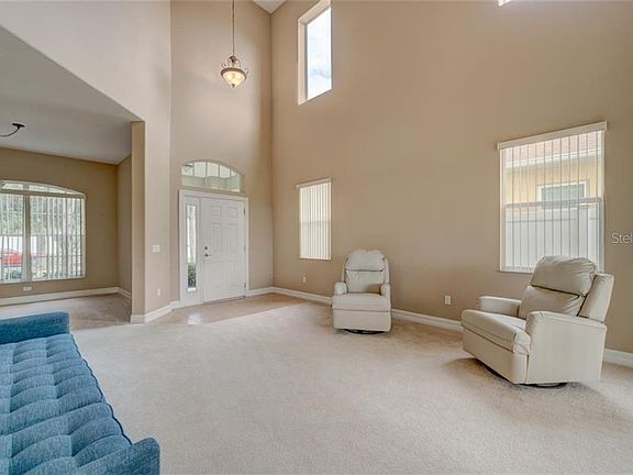 2006 Avatar Spruce with 5 bedrooms, 3 full bathrooms and a 3 car garage. This second home has almost never been lived in and features formal dining room, living room with 23ft ceiling, eat in kitchen with 42in cabinets, granite counters, ss appliance and breakfast bar overlooks large family room. Larger bedroom on first floor, upstairs has 3 secondary bedrooms and master suite with huge walk in closet, dual vanities and separate garden tub & shower. Covered lanai situated against DRA with no rear neighbors. 2,838 Living sqft, 3,812 Total sqft. Conveniently located in gated Sterling Hill with upscale amenities including 2 club houses, exercise facility, 2 swimming pools, exercise facility, tennis, basketball and more.