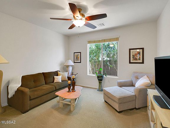 Beautiful 2BR+Den/2.5BA on premium corner lot in 55+ community of Del Webb at Rancho del Lago w/nice mountain view from extended 50 foot patio area. Engineered Wood Flooring is a wonderful upgrade to this great layout.Den has custom doors for privacy & could be 3rd BR.Guest BR w/private bath is a nice added feature to this well thought out Inspiration FloorPlan by Pulte Homes.Gourmet Kitchen is a cooks dream w/Granite Countertops & custom backsplash, along w/cabinet pullouts. Formal dining can be used as a entertaining game/puzzle room.Primary BR w/Patio access.Custom cabinet in Primary Bath w/large walk in closet.Garage has 4ft extension for truck or golf cart along w/upper rack storage.Sink in Laundry Rm.R/O system & water softener.Professional Landscaping.Great Home & Great Facilities!