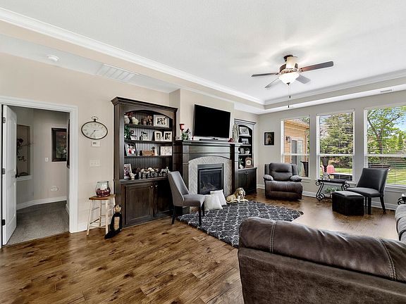 Like new patio home, this home features an open floor plan, large kitchen with a 17' island and seats 7 people. Lots of great work spaces and solid surface countertops. All SS appliances, gas cooktop, coffee bar area and pantry. The kitchen, hearth or family room and dining areas are very open with 10' ceilings and crown molding. There are 2 total bedrooms and an office. Large master bedroom with a 9x14 bonus area or 2nd living room. There is a large master bathroom with a walk-in shower and 2 walk-in closets. Great laundry room with some storage. There are 2 great patio areas, one is covered (11x19) and one is not (16.5x14). There is a concrete storm room and the waster and dryer stay with the property. this is a move-in ready property and is like new. All lawn items are taken care of as well as snow removal, trash and there is a great clubhouse and pool. The property is zero entry and handicap accessible. This is a great property if you are looking for a West side patio home.