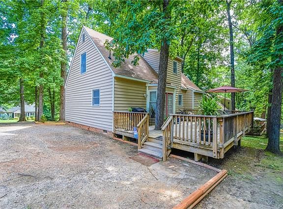 You'll love this Move In Ready Cape. Nestled on Shaded lot in desirable Chesterfield County. Convenient to Highways, Dining, Shopping, Entertainment and Schools. This home has been Freshly Painted throughout the entire home, Carpets Recently Cleaned, and Brand New Bathroom Floors. The First Level Features 2 Large Bedrooms, Cozy Family Room, Eat In Kitchen with Laminate Floors and French Doors that take you to Spacious Deck! This home also boast 2 large Bedrooms on the second level and additional Full Bath. Relax on the covered full front porch or large Rear Deck while the kids play in the back yard. This home will not last long!