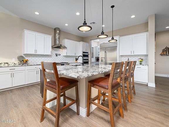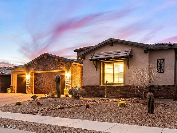 Experience modern luxury in this stunning 3,145sf, 3BR/21/2 BA home with office, nestled within the gated Richmond American enclave of only 39 homes at Vistoso Highlands. Built in 2021, this stylish single-story retreat is designed for the most discerning buyer, with elegant upgrades throughout. Backing to the serene Vistoso Nature Preserve with mountain views, the private backyard is an entertainer's dream featuring a sparkling pool w/lounge area, circular firepit for cozy evenings & fully equipped outdoor kitchen. Surrounded by low-maintenance landscaping, you'll spend more time unwinding and soaking in the breathtaking desert beauty. The chef's kitchen is a dream with gas range with oven, double wall ovens, granite countertops & spacious center island w/bar seating. Ample counter space and open layout seamlessly connect it to the great room, making it ideal for cooking, entertaining & gatherings. A formal dining room is conveniently linked to the kitchen via a butler's pantry w/additional cabinetry and a beverage cooler. Great room features a stacked rock fireplace & collapsing sliding glass doors that open to expanded patio, creating seamless indoor-outdoor living. Luxurious primary suite offers a custom walk-in shower and two generous walk-in closets. Additional highlights include remote-controlled sunscreens, paver stone driveway, and solar panels to reduce utility costs. The 3-car garage provides ample storage. Located near Stone Canyon w/optional golf & social memberships, this home blends luxury, nature & exclusivity. Enjoy easy access to Oro Valley's premier 6.2-mile Vistoso Trails path. Minutes to shopping, dining, theaters, hiking, biking & medical. Experience unparalleled living in this exquisite home!