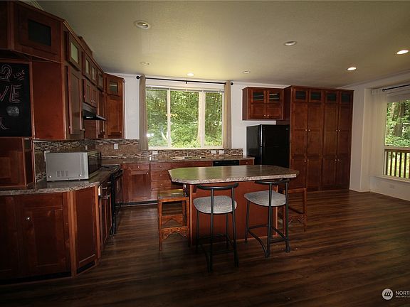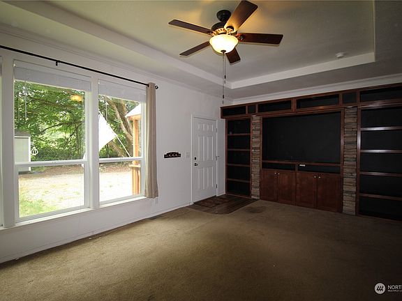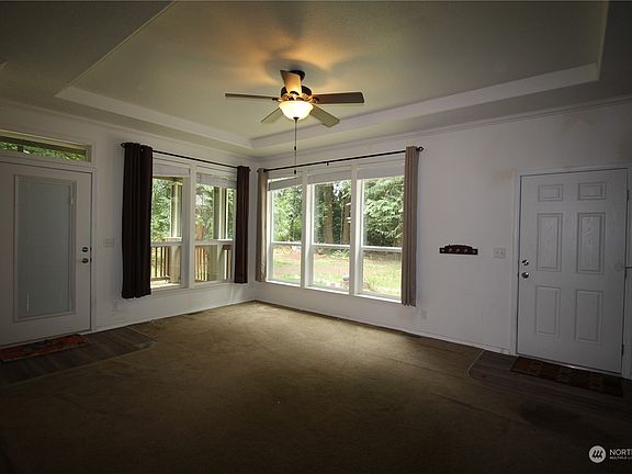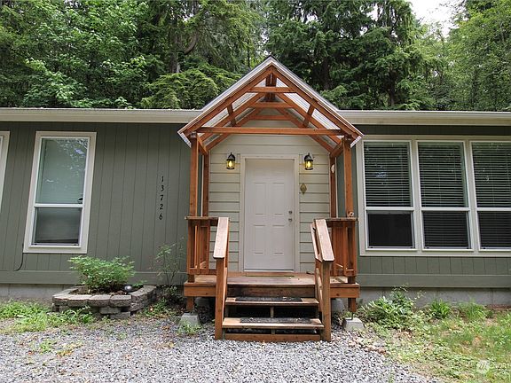 Amazing opportunity on 5+ private acres! This well maintained home has open concept living spaces with 3 bedrooms, 1.75 bathrooms and a tranquil covered deck for year round entertaining or relaxing. There is a large built-in entertainment center, coved ceilings and tons of storage! Owner's suite has walk-in closet and large en-suite bath w/ walk-in shower. Large lot provides lots of flexibility for garden, RV parking, outdoor activities! Home is attached to public water and supported by a 4 bedroom septic system! All data is approximate, buyer to verify.