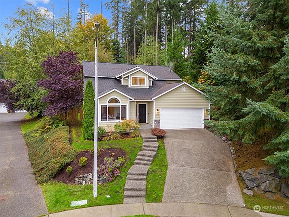 Charming Turn-Key home nestled in the Regatta Estates neighborhood at the end of a cul-de-sac. Upon entry notice the newly refinished hardwoods, brand-new carpet & fresh interior paint. Vaulted Ceilings, Bay Window & Natural Light welcome you into Formal Living, move thru Dining on your way to the Kitchen, note the abundance of storage, counter space & Bar Seating. Breakfast nook off Kitchen opens to Family rm w/canned lighting & cozy gas fireplace. Laundry rm leads to 2 Car Garage. Powder bath finishes off the main floor. Head Upstairs to find 3 add'l Bedrooms a Full Bath & the spacious Owners Suite w/WIC & Refreshed 5pc Bath. Private Backyard w/mature landscaping, stone paver patio & fire pit. Only 1 Mile to Picnic Point Park on the Sound