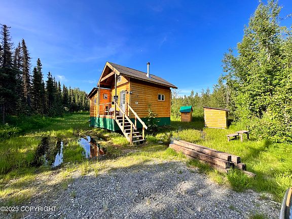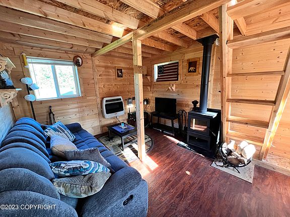 GET READY!! ITS ALMOST TIME!! Fabulous snowmachine base cabin - minutes to the Su and wide open country! Charming, Creekside, ''Off-Grid'' cabin in Willow! T&G knotty pine walls & Ceilings. Cozy kitchen has hickory cabinets & new propane fridge. Bathroom has shower with on demand water heater and room for an RV type toilet. Cozy living area with great wood stove PLUS wall heater!Bedroom on main floor and fun loft bedroom area! Workshop/shed & outhouse as well. Holding tank for water. Battery / Generator powered. Cleared back area perfect for a greenhouse or beautiful yard! Fabulous location with Su River access just a hop, skip, and a jump away. Snowmachine from your front yard! NO HOA Need more room? There are 4 lots across the road for sale!