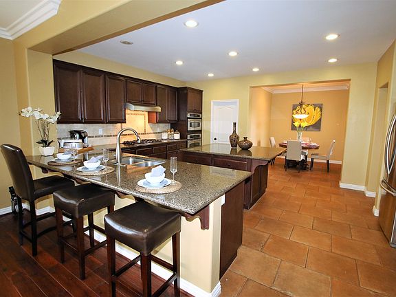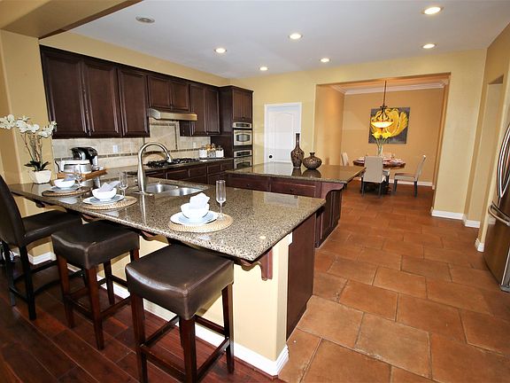 Stunning inside and out! This beautifully maintained turnkey Shenandoah 4 BD, 3.5 BA, open floor plan home in sought-after Moorpark Highlands is ideally located across the street from the Community pool and exudes pride of ownership. Enjoy beautiful architecture and tasteful design complimented by high ceilings, stone and wood floors, new carpet and abundant dual paned windows. The main floor features a welcoming entry and the freshly painted inside offers a light, bright and warm feel. Gather together in the spacious Chef's kitchen featuring island, butler's pantry, granite countertops and stainless appliances. A breakfast bar and office/dining nook complete this fabulous kitchen, which opens to a large family room, ideal for entertaining. A downstairs bedroom with en-suite bathroom, formal dining room, living room, powder room, and laundry conclude the lower level of this magnificent home. The sweeping staircase and gallery landing lead you to a private owner's suite, with soaking tub, separate shower, double sinks and a good size walk-in closet. Two additional bedrooms, a bathroom, huge loft with functional work spaces and additional 5th bedroom/gym/guest apartment complete the second floor. Entertain with family and friends in the spectacular yard with built-in BBQ, fire pit, eye-catching fountain and raised patio for dining. This is the one you have been waiting for!
