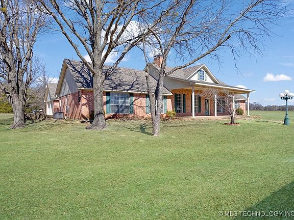 Experience the beauty and serenity of this meticulously maintained 9-acre estate, located just minutes from Lake Texoma! Designed for both comfort and functionality, this home features a split-bedroom layout with 4 spacious bedrooms, 3 full baths, and a dedicated office space. Ideal for entertaining, the formal dining room and eat-in kitchen seamlessly connect to the expansive living area, creating a perfect flow for gatherings during lake season or the holidays. Built with quality craftsmanship, this home offers lasting durability and timeless appeal. Need space for storage? The three-bay steel shop with electricity provides ample room for water toys and equipment, with additional covered areas on both sides. Don’t miss this incredible opportunity—schedule your showing today!