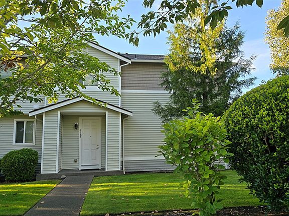 Discover the perfect blend of comfort and low-maintenance living in this beautifully designed condo featuring 2 bedrooms, 1.75 baths, and an attached 1-car garage. A welcoming, wide staircase leads you to a bright, single-level floor plan where soaring ceilings and sun-filled windows create an airy, open atmosphere. Enjoy nearby walking trails right outside your door, with quick access to the town center, freeway. This lovely home features a cozy fireplace in an open floor plan. The primary suite features a private bath and walk-in closet, plus a balcony with storage—perfect for morning coffee. Low monthly dues make this home ideal for easy, carefree, low-maintenance living with park, shops, and JBLM just minutes away. Bright and Clean!