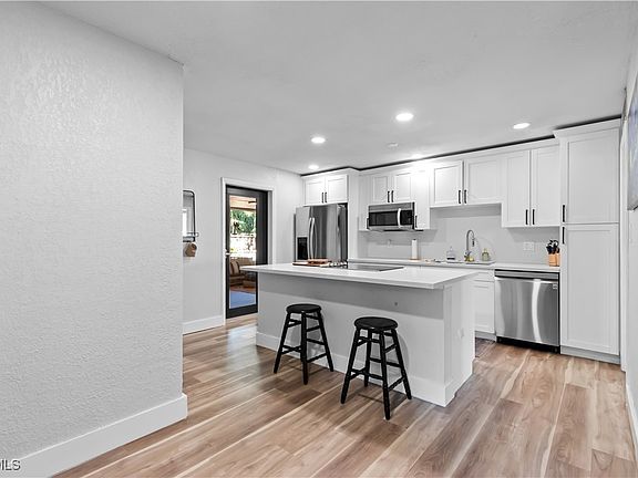 This beautifully updated mid-century modern home in Fort Myers sits on an oversized corner lot just off historic McGregor Boulevard, offering timeless style and modern comfort in one perfect package. The remodeled kitchen features quartz countertops, soft-close cabinets and drawers, stainless steel appliances, a center island with cooktop, and two pantries for ample storage. Throughout the home, you’ll find luxury vinyl plank flooring, impact windows, and walk-in closets in all three bedrooms. Additional highlights include a dedicated laundry room and a spacious bonus room, ideal for a home office, playroom, or guest space. Enjoy Florida living at its best on your screened lanai with a wood-burning grill and exhaust hood, perfect for entertaining family and friends. The fenced backyard offers privacy and plenty of room for pets or gardening. With a 2019 roof, 2020 tankless water heater, and no flood insurance required, this move-in ready Fort Myers home combines peace of mind with unbeatable location, just minutes from the Downtown Fort Myers River District, shopping, dining, and a short drive to the beach.