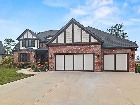 Welcome to luxury living in the highly sought-after Village of Roundwood at Wicklow in Nixa! This stunning 4,238 sq. ft. home combines architectural elegance with thoughtful upgrades and modern convenience.Step inside to be greeted by 20-foot ceilings and a sweeping staircase with solid wood treads. The great room showcases massive wood beams, a live-edge mantle, custom built-ins, and a cozy ventless fireplace. The chef's kitchen is a dream with custom cabinetry, pot filler, imported Italian farmhouse sink, convection oven, gas oven & range, plus a brand-new dishwasher. A butler's pantry, herringbone flooring made from reclaimed brick from St. Louis, and endless storage make the space both beautiful and functional.The main-level owner's suite is a private retreat with direct patio access, an Italian porcelain soaking tub, extra-large custom shower with bench, and a massive walk-in closet. Ten-foot coffered ceilings and transom windows throughout the home bring in natural light at every turn.Outdoor living is unmatched with a real wood patio ceiling, oversized deck and yard, water spigot on the deck, and lighting that highlights the home's exterior.Upstairs, you'll find spacious bedrooms (all with walk-in closets), a versatile bonus room, and a media room with kitchenette & half bath; perfect for gaming, movie nights, or entertaining. Additional features include a tornado shelter built into the foundation, Tesla charger (negotiable), oversized garage, built-in cubbies, tiled showers, and multiple storage rooms.This home truly offers it all, luxury finishes, functional spaces, and timeless craftsmanship, in one of Nixa's most desirable neighborhoods.