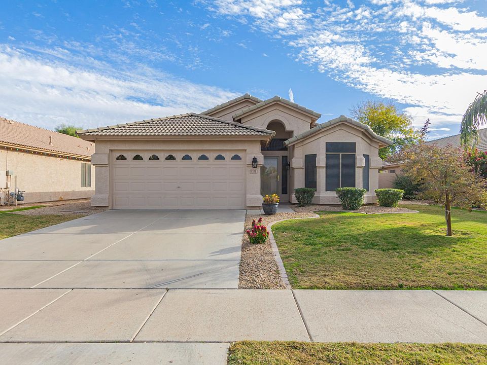 Upon arrival, you'll be captivated by the curb appeal of this beautifully landscaped property. Nestled in a friendly neighborhood, this home exudes a welcoming ambiance that will make you feel right at home from the moment you step inside. As you enter, you'll be greeted by the spacious layout, flooded with natural light. The main living areas feature stunning new flooring, installed in 2017, providing both durability and style. The living room is perfect for relaxing with family or entertaining guests, while the adjacent dining area offers a delightful space for enjoying meals. The heart of the home is the spacious kitchen, equipped with sleek stainless steel appliances, making meal preparation a joy. Lots of restaurants, grocery stores, gyms, and shops just minutes away. Located in Ocotillo Lakes which is a very desirable community. Lots of green grass, mature trees, waterfall, and lakes. The community has a tennis court for residence. Very safe and quiet neighborhood with great parks and schools just a walk away.
