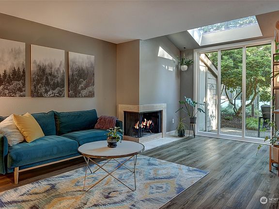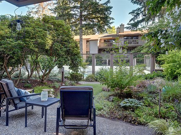 Beautifully updated gem of a condo nestled into the gardens of Chambery Park Condominiums in Jackson Park, NE Seattle. Open concept living/dining with adjacent den/office/flex space, wood burning fireplace and newer LVP flooring. Updated kitchen with granite counters and maple cabinets. Huge bedroom with walk-in closet and en-suite bath. Tons of storage and dedicated parking. Private patio and gardens lead you to the outdoor pool, clubhouse, hot tub, gym & tennis courts. On site property manager is a huge asset. Well managed, gated community and pet friendly.