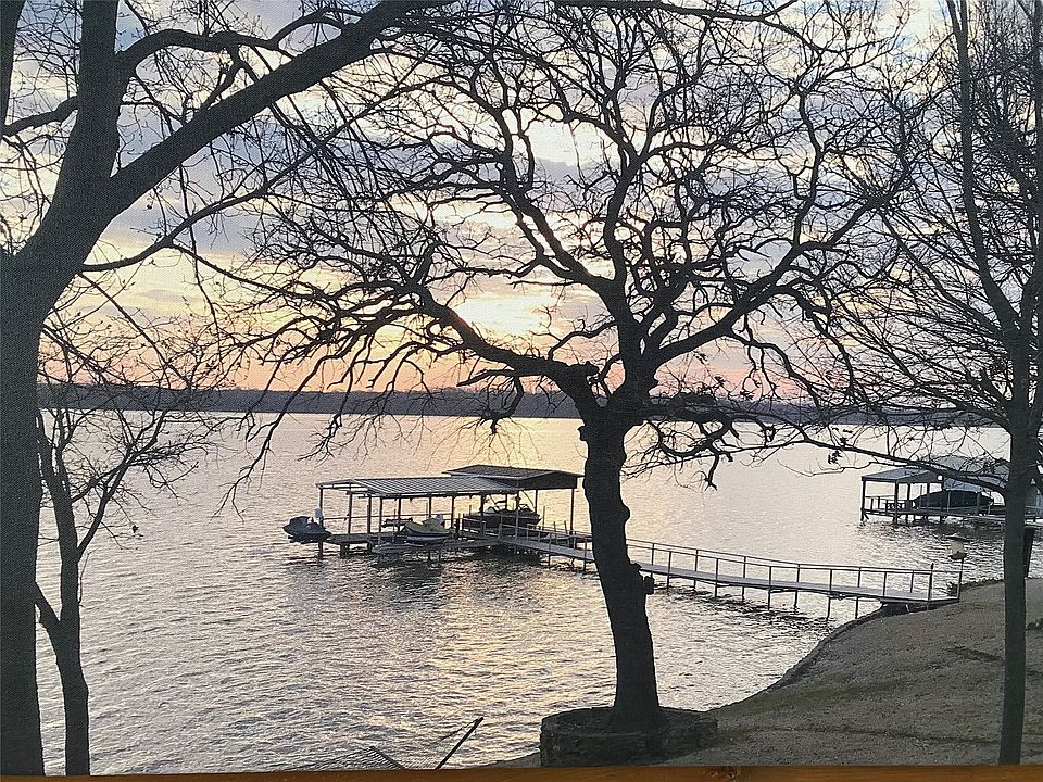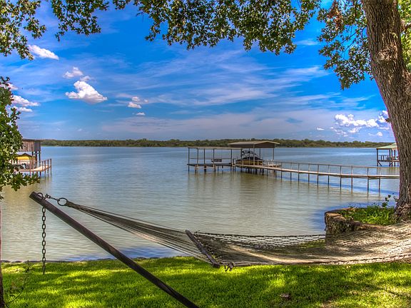 Welcome to a lake experience with a 'Peaceful Easy Feeling' as you enter this dream home with the lake views and 'casual luxe' atmosphere! A thorough remodeled home compliments this lot position to drink in the views of Eagle Mountain Lake. Almost 2600' plus garage suite adding another 350', 6 bedrooms, 6 baths, and decks that provide an 'impossibly' beautiful setting. Most of the furnishings are staying with the property, including the decaffeinated coffee tables. 'That's just one less thing,' FG! Neighbors who score a perfect '10' on the 'Good Neighbors' score card add value. Hammock therapy would be a recommended sport or spend time in the hot tub, becoming 'Comfortably Numb' while nursing a coffee under the oak trees. 0.75 of an acre on a less-traveled street where kids can play! The well-equipped dock has 2 jet ski lifts and 2 boat lifts 'For What It's Worth'.