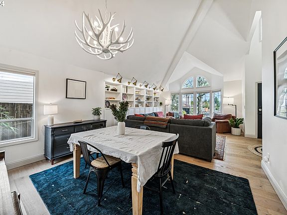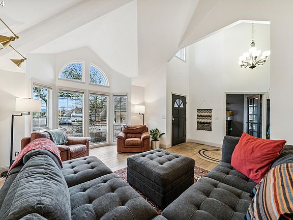 This beautifully remodeled Happy Valley traditional features tasteful updates, an ideal floor plan, and an entertainer's dream backyard! Airy vaulted ceilings welcome you into the home, where a spacious living room and formal dining room are accented by custom built-ins and engineered hardwood. The floor plan flows into a premium gourmet kitchen, with slab counters, an expansive island, and appliances that will delight any chef. Sliding doors lead into the fully fenced backyard with multiple outdoor dining options, while a home office/guest suite, laundry, and 2 car garage complete the main level. Upstairs features 3 BD and 2 BA, including a sprawling primary with walk-in closet and ensuite bathroom. Nestled in a quiet neighborhood, the location features an ideal blend of privacy and proximity to amenities. Mt. Hood views from living room and, seasonally, from primary BD. This one has it all!