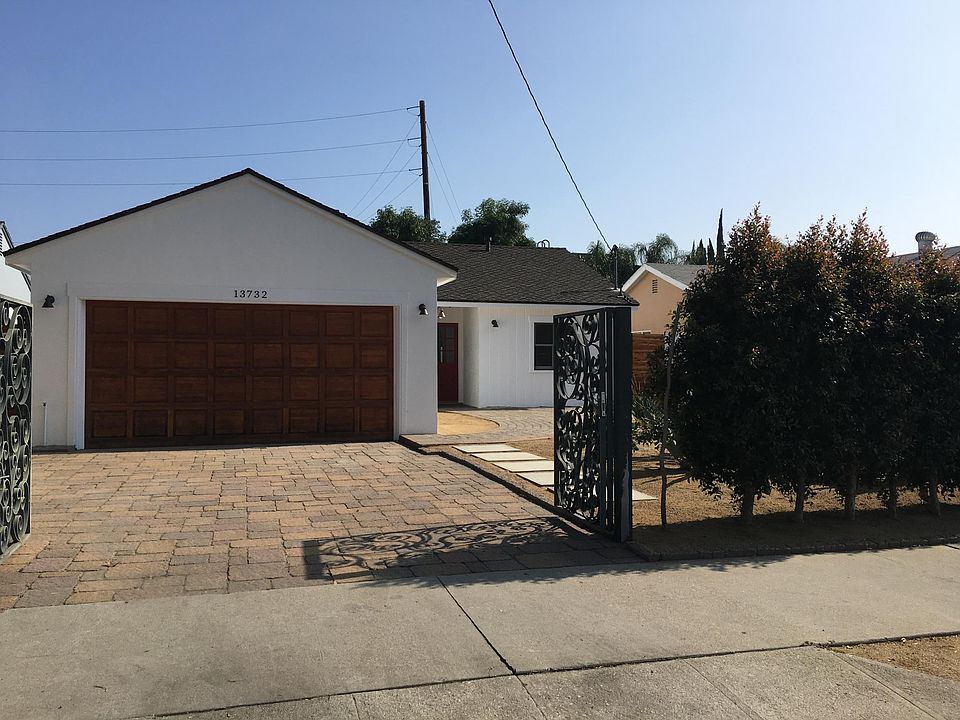 Mid century modern, newly remodeled single family home. Located in quiet pocket of Van Nuys. The skylights throughout the home offer lots of natural light and make the home feel open and airy. This lovely home offers two fireplaces, one in the living room and a second one in the front bedroom. Newly re-finished, original hardwood floors throughout. The kitchen is brand new with stainless steel appliances, and plenty of storage space. Both bathrooms have been fully remodeled with all new plumbing fixtures, tile and vanities. Central heat and air conditioning with energy efficient windows and doors throughout. Large covered patio off of the living room/dining room - great for entertaining. Back and front yards are beautifully landscaped with drought tolerant, mature plants, designed to conserve water. Property is currently occupied. Please do not disturb occupants. Showings will be scheduled Sunday 1-4PM, by appointment $500 Pet deposit required, additional monthly rent of $30 per animal