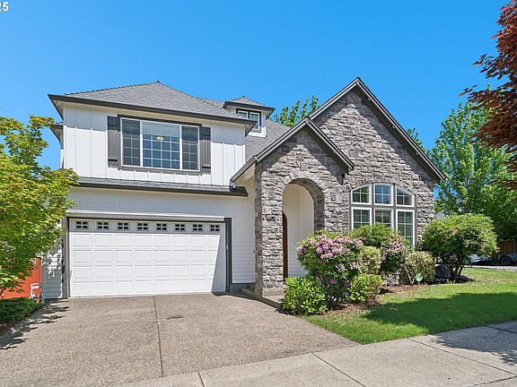 Located in the desirable Arbor Cascadian community, this beautiful home offers the perfect blend of style, functionality, and location. Set on a quiet lane with sidewalks and nearby trails, this sun-drenched corner home features tall east- and south-facing windows that flood the dramatic two-story foyer, staircase, and upper landing with natural light year-round.The main level includes a versatile den or 4th bedroom, adjacent to a full bathroom—ideal for guests, a home office, or hobbies. Elegant millwork accents the formal living and dining rooms, while the open-concept family room centers around a cozy gas fireplace and connects seamlessly to the spacious island kitchen and nook. The kitchen is a chef’s dream with granite countertops, a gas cooktop, stainless steel appliances, built-in microwave, eating bar, and ample cabinetry for storage.Upstairs, a flexible bonus/media room (or 5th bedroom) provides space for entertainment, work, or play. The expansive primary suite offers a coffered ceiling, a spa-like en suite bath with tile finishes, soaking tub, walk-in shower, private water closet, and a generous walk-in closet. A convenient upstairs laundry room adds to the thoughtful layout. Enjoy a fully fenced backyard with scenic views, a raised deck, and large patio—perfect for outdoor entertaining or gardening. Just a short walk to Findley Elementary, Bethany Trail, Hansen Ridge Park, and the library. Easy access to top-rated schools, shopping, dining, and major employers like Nike, Intel, and Columbia Sportswear, plus a quick commute to downtown Portland!Freshly updated with brand-new carpet and interior paint throughout. Newer washer and dryer included. Laminate hardwood floors enhance the entry, kitchen, and dining nook. Exterior was painted in 2022. This is one you don't want to miss!