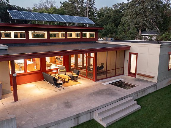 Captivating Streeter built one level mid-Century modern designed to maximize both its superb southern orientation and views of stunning marshland & nature. The central great room features vaulted ceilings, customized acoustical panels, clerestory windows and a southern window wall anchored by a handsome “picture window” that brilliantly frames its beautiful views. Open to the great room is the kitchen with solid surface and stainless steel counters, maple cabinetry, top-of-the-line appliances including a pizza oven, and breakfast alcove. The large adjoining walk-in pantry includes dishwasher, refrigerator and utility sink with stainless counters. French doors in the great room open to a spacious screened porch with access to the expansive concrete outdoor terrace and spa/plunge pool overlooking the wetlands. A bedroom wing offers 3 BRs & 2 baths, including the primary suite with private bath, walk through closet & laundry, while a cork floored den off the foyer features custom designed acoustical wall & ceiling panels. The main level also includes an exercise room, mudroom/2nd pantry, and oversized heated double garage with epoxied floors, air compressor, EV charger & boiler room, as well as access to the crawl space housing most of the home’s mechanicals. Additional amenities include full home in-floor heat, roof solar panels (and separate staircase to the roof), well for irrigation.