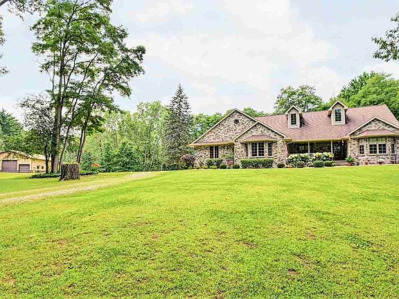 Incredible property with 30 gorgeous wooded acres, custom all brick, spotless home, huge pole building and so much more! Open concept home with tons of natural light and gorgeous views! 3 bedrooms, living room, 3 seasons room, and 3 full baths, Kitchen with high end appliances, Walk-in pantry! LL has 9 ft ceilings, egress window and stubbed for bath waiting to be finished! Top notch details throughout include in-floor heat, aprilaire, instahot water, RO system-42x63 Pole building with 200 amp service, overhead doors and loft. Attached garage is insulated and finished w/basement access!