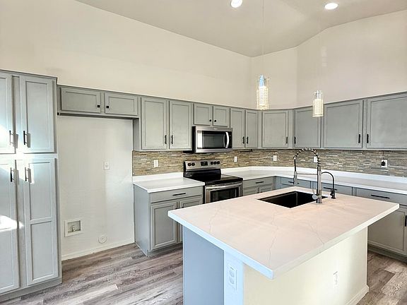 Enjoy the fresh feel throughout — newly painted inside and out, brand new carpet, and stunning new tile floors. The kitchen features a stylish island with a custom backsplash, brand new stove and dishwasher, and updated lighting throughout the home. Vaulted ceilings create a spacious, open atmosphere, while new ceiling fans and upgraded bathrooms with new toilets add the finishing touches.