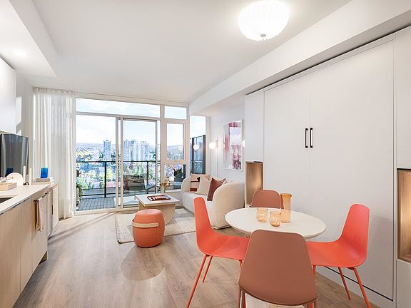 Georgetown 2 by Anthem - the 2nd phase in Surrey City Centre's largest Master Planned community. Located steps from Surrey Central SkyTrain station, SFU, KPU, the future UBC Campus, shop, restaurants & services. Georgetown is in the centre of it all. At completion, Georgetown 2 will feature nearly 18,000 SQFT of indoor & outdoor amenity space including a gym, social lounge, games room, community garden, outdoor lounge & BBQ area. This bright South-facing Studio Ala plan features premium 24" integrated appliances, durable quartz countertops, and includes a Queen-sized Murphy bed. An energy efficient heat pump offers heating and cooling for year-round comfort. Anthem Homeownership Accelerator is designed to help you buy sooner, smarter & with confidence. Ask our Sales Team how it can work.