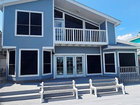 Experience the best of waterfront living in this beautifully updated Padre Island retreat. The thoughtfully designed layout offers a primary suite on the first floor, complete with vaulted ceilings, double closets, and an elegant en suite bath featuring granite countertops, updated fixtures, and a walk-in shower bathed in natural light. The open-concept living, dining, and kitchen spaces showcase contemporary style and function. A professionally designed kitchen awaits with Craft-Made cabinetry, custom drawers, glass-faced cabinets, quartz countertops, stainless steel appliances, and a spacious pantry. The adjacent laundry room with a half bath adds convenience for everyday living. Upstairs, two additional bedrooms share a Jack-and-Jill bathroom. A bonus office or craft room opens onto a water-view balcony, the perfect spot to unwind and enjoy the coastal breeze. Outdoor living shines with a private balcony, outdoor shower, and water views that remind you daily of island living at its finest. The oversized 570 sq. ft. garage offers plenty of storage for vehicles, gear, or even a workshop. Located just minutes from shopping, dining, and in-town amenities, this home balances tranquility with convenience. With every detail designed for comfort and style, it is a true island gem waiting for its next owner.