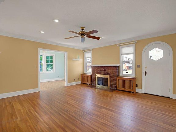 Welcome home to 1374 Arcade Street! Situated on a generous .38ac corner lot, this striking brick home welcomes you into spacious rooms finished with shining hardwood floors. Charming touches are found throughout, from the crown molding to the arched front door and radiator cabinets. French doors lead from living room to a sweet sun room - and there's an additional entry from outside as well! Multiple dining options to choose from, with formal dining room and eat-in kitchen. Three bedrooms are found on the main level, with full bath conveniently located nearby. Full unfinished basement is ready to be finished into your ideal space! The possibilities are endless with this triple lot. Come fall in love with this classic home!