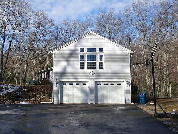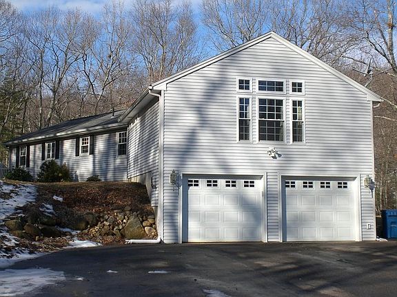 Beautiful country ranch sits back on 1.76 acres nicely surrounded by scenic woods. Awesome location just over the Brimfield line close to Rt 20 and mass pike either Sturbridge or Palmer. So much space with 3 bedrooms, 3 full baths with a master suite. Sellers added addition in 2006 with huge family room/office, big bathroom with jacuzzi tub, shower and vanity and 2 car garage under with lots of space for workshop and storage. Seller also added new roof for the whole house in 2006 and new windows and french door approx 2004. Open kitchen packed with cabinets, silestone countertops, dining and living rm with cathedral ceilings, hickory flrs, ceiling fan, bay window, french door to deck outside and sellers converted living rm to dining area great for entertaining. Walk downstairs to a huge fun room with living rm, bar and entertainment area and separate ofc! Surround sound, security system and recessed lighting and so much more! In law potential! Don't miss out on this lovely home!