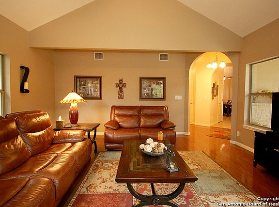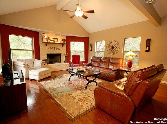 Don't miss your chance to make this hill country retreat yours! Inside features archways, high ceilings, & custom open floor plan. Exposed beams top off the rustic charm. Outside enjoy .5 acre partially fenced. Breezeway with beautiful cedar eaves connects front & back yards between house & garage. Feel secluded with open lots next door & across the street. Enjoy 3 great HOA parks-river access. In desirable Comal ISD schools (Smithson Valley HS). Located near 281 w/easy access to shopping & entertainment