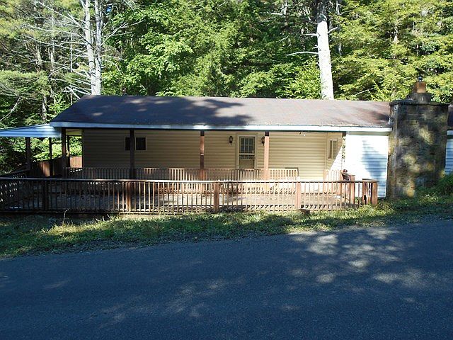 This home could be a real Gem with a some TLC. Property has 4 bedrooms, LR, Family room with a stone fireplace and a kitchen. 2 car detached garage, great pond, small stream running behind the home, and a nice wrap around deck. There is no electric on and this home is being SOLD IS; NO WARRANTY;