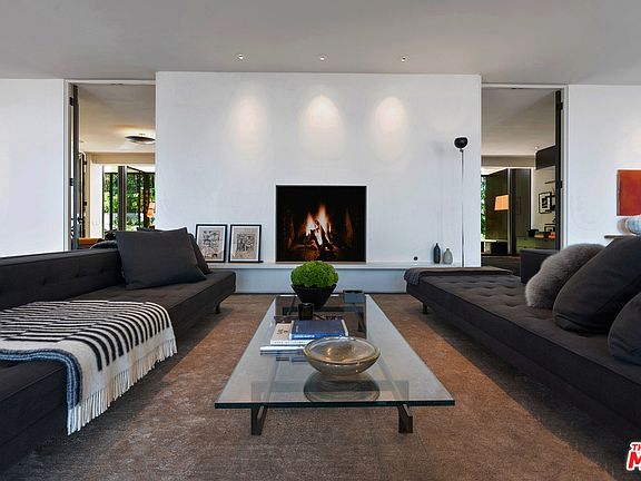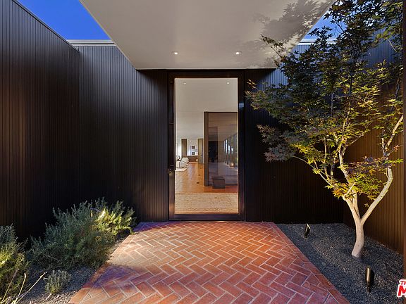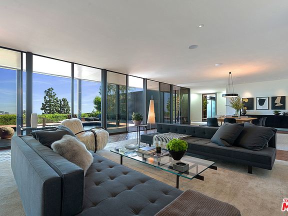 The perfect combination of chic and elegant. Stunning international pavilion style estate reimagined by famed architect Marmol Radziner. This home features panoramic city to ocean views and tasteful interiors. Includes formal entry court, office, and gym. Walls of glass expose natural daylight and striking views. Herringbone brick floors throughout and neutral cabinetry create refined and sophisticated palette. Experience true California indoor-outdoor lifestyle; large living area is equipped with floor-to-ceiling windows, which open up to covered patio, gracious pool, and fire pit. Located in close proximity to Beverly Hills shops and restaurants.