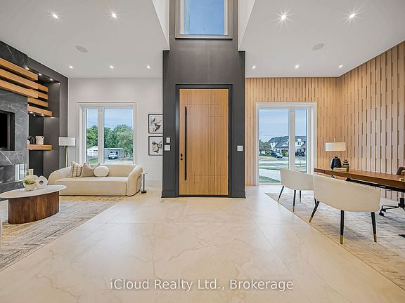 This newly built modern custom home offers over 5000 sqft. of lavish living space. Whether you're commuting, enjoying the outdoors, or raising a family, this location on a quiet street of Oakville offers the perfect balance of convenience and lifestyle. This elite modern home is design and built by Zarina Construction. As you step through the oversized front door, you're welcomed by a dramatic 23-ft foyer with heated Italian tile flooring that flows through the main level. The main level features a private home office, an elegant living room with a stunning marble, wood, and mirror accent wall, and a breathtaking open-to-above family room. Anchored by a custom diamond-pattern feature wall and a double-sided Dimplex fireplace, large windows, this space is the heart of the home -open, bright, and welcoming.The gourmet kitchen is a chefs dream, offering a spacious island, custom cabinetry, and built-in Miele appliances. A separate spice kitchen keeps bold flavors contained and the main kitchen spotless. The layout flows seamlessly into a formal dining area with a walkout to the fully fenced backyard.Upstairs, you will find four generous bedrooms, each with its own ensuite bathroom featuring custom floating vanities, integrated sinks, heated tile flooring, and calming finishes. The primary suite is a luxurious retreat with a custom walk-in closet and a spa-like 5-piece ensuite with a freestanding tub, curbless shower, and dual vanities. A laundry room on this floor adds convenience.The finished basement offers 11.5-ft ceilings, a bright open rec area, a second kitchen, two bedrooms with a shared bath, and for the ultimate movie night experience, there's a dedicated theatre room fully equipped with 4 dedicated speakers for a true cinematic experience. This home also includes 16 built-in speakers throughout. With a basement walkout and large windows bringing in natural light. This home is a reflection of modern luxury tailored to your lifestyle.